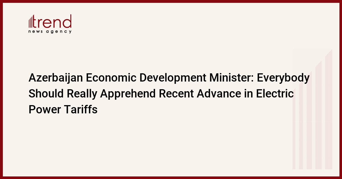 Heydar Babayev, Azerbaijan's Economic Development Ministry, has said today that everybody should really apprehend the recent advance in electric power tariffs, Trend reports referring to National AzTV Channel. The decision is the continuation of reforms being carried out in the economy and housing sector, said the Azerbaijani Minister.