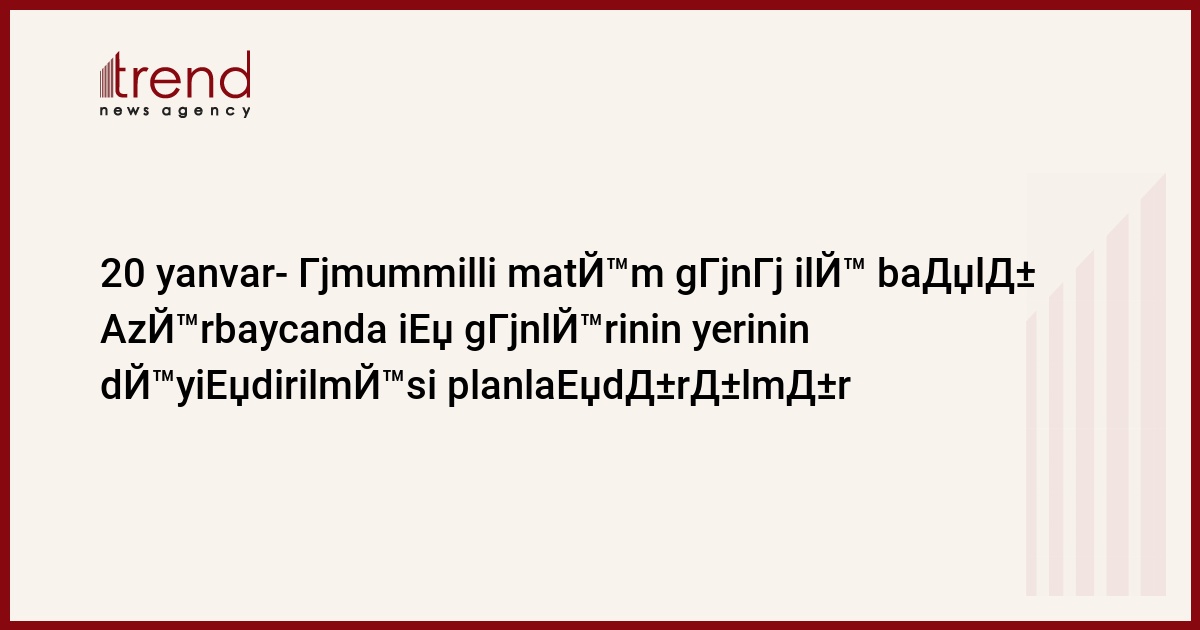 20 yanvar- Гјmummilli matЙ™m gГјnГј ilЙ™ baДџlД± AzЙ™rbaycanda iЕџ gГјnlЙ™rinin yerinin dЙ™yiЕџdirilmЙ™si planlaЕџdД±rД±lmД±r. Bu barЙ™dЙ™ В"TrendВ"Й™ AzЙ™rbaycan NazirlЙ™r Kabinetinin elm, mЙ™dЙ™niyyЙ™t, xalq tЙ™hsili, sosial problemlЙ™r vЙ™ tibb ЕџГ¶bЙ™sindЙ™n mЙ™lumat verilib.