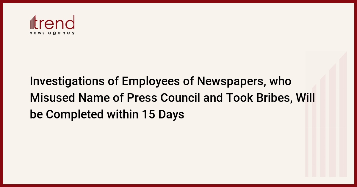 The Chairman of the Press Council of Azerbaijan, Aflatun Amashov, informed Trendthat the investigations of employees of the newspapers, who are accused of misusing the name of the Press Council and taking bribes, will be completed within 15 days.
