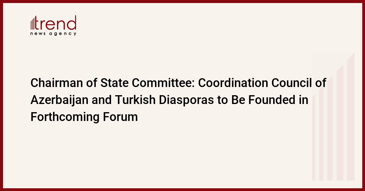 Nazim Ibrahimov, the Chairman of the State Committee for Affairs with Azerbaijanis Living Abroad, said during the today press-conference that the Coordination Council of the Azerbaijan and Turkish Diasporas is expected to be founded in the First Forum of the Leaders of Azerbaijani and Turkish Diaspora Organizations to be held in Baku on March 9, 2007.