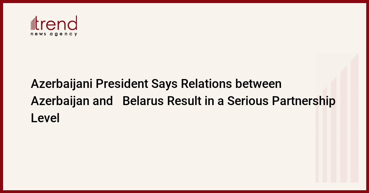 Azerbaijan, Baku/ Trend , corr. A. Ismayilova/ Azerbaijan's President, Ilham Aliyev, stated in Baku today that relations between Azerbaijan and Belasrus are at a new level of serious partnership.