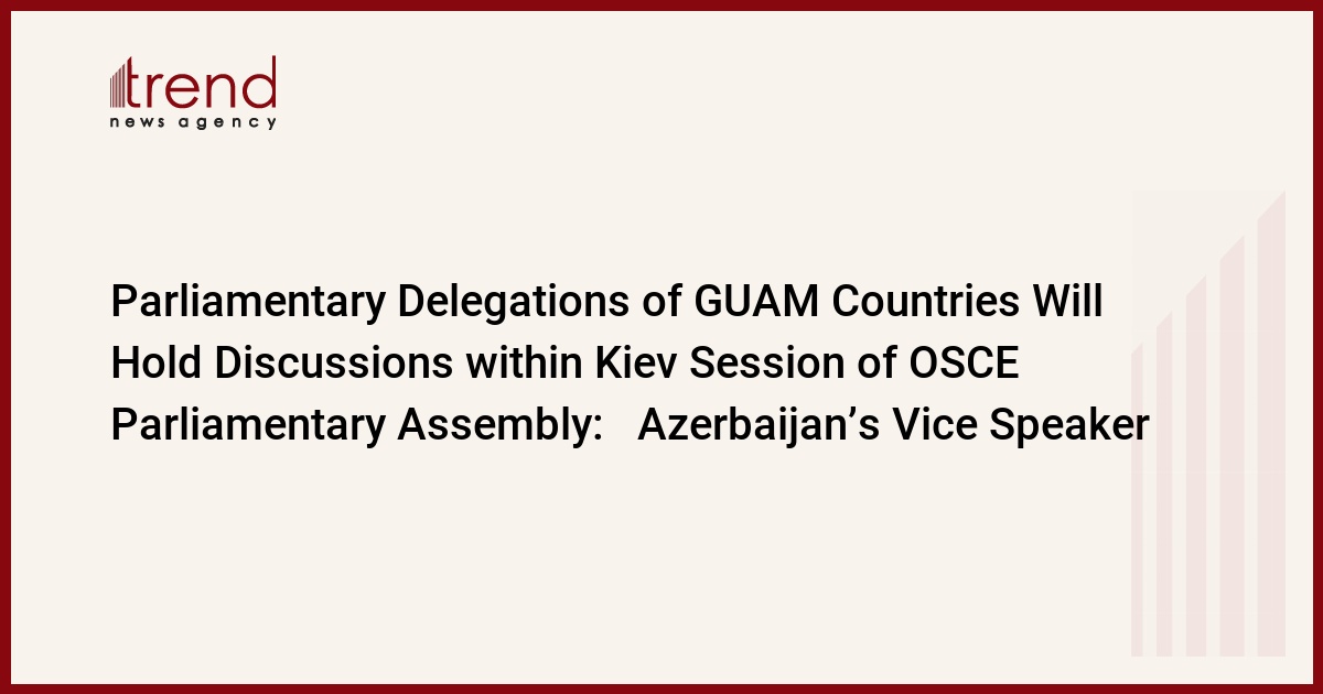Azerbaijan, Baku / corr Trend E.Huseynov / The Parliamentary delegations of the GUAM countries intend to hold discussions within 16th session of the OSCE Parliamentary Assembly due on 5-10 July in Kiev. Within the session, discussions will be held on the issues arising from the recent Baku summit of GUAM, said the Vice Speaker of Azerbaijan Parliament, Bahar Muradova, on 4 July.