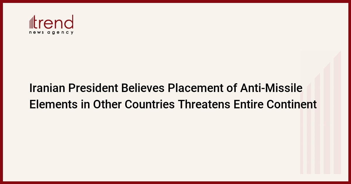 The placement of anti-missile defence elements by some countries in other countries goes beyond threatening one country but affects the entire continent, including the countries of Shanghai Cooperation Organization (SCO), the Iranian President, Mahmoud Ahmadinejad, stated at the meeting of the SCO Presidential Council on 16 August, according to ITAR-TASS.