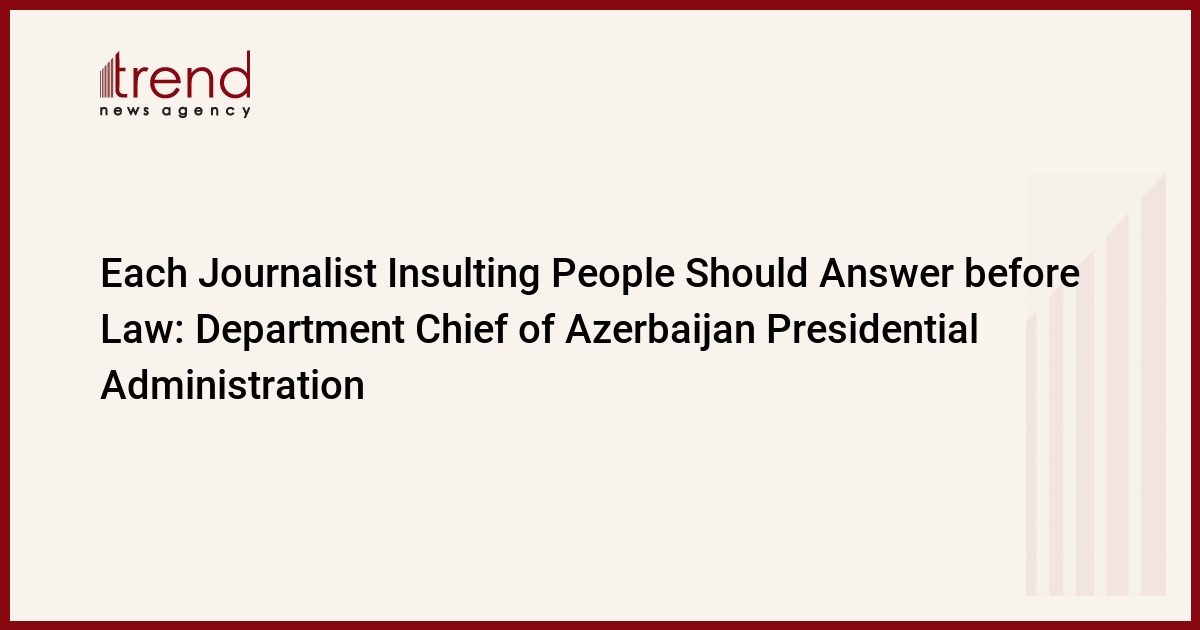 Azerbaijan, Baku /corr. Trend K.Ramazanova / The Head of the Social-Political Department of Azerbaijan President's Executive Apparat, Ali Hasanov, briefed the media on 9 November that not depending on his/her profession, everybody who insults the honor and dignity of people should answer before the law.