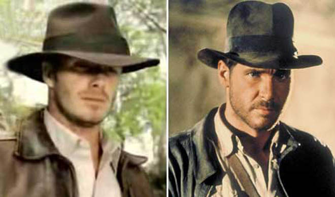 The striker is a dead ringer for Indiana Jones in the ad as he dons a fedora hat and a brown leather jacket - with his name and number 23 printed on the back.