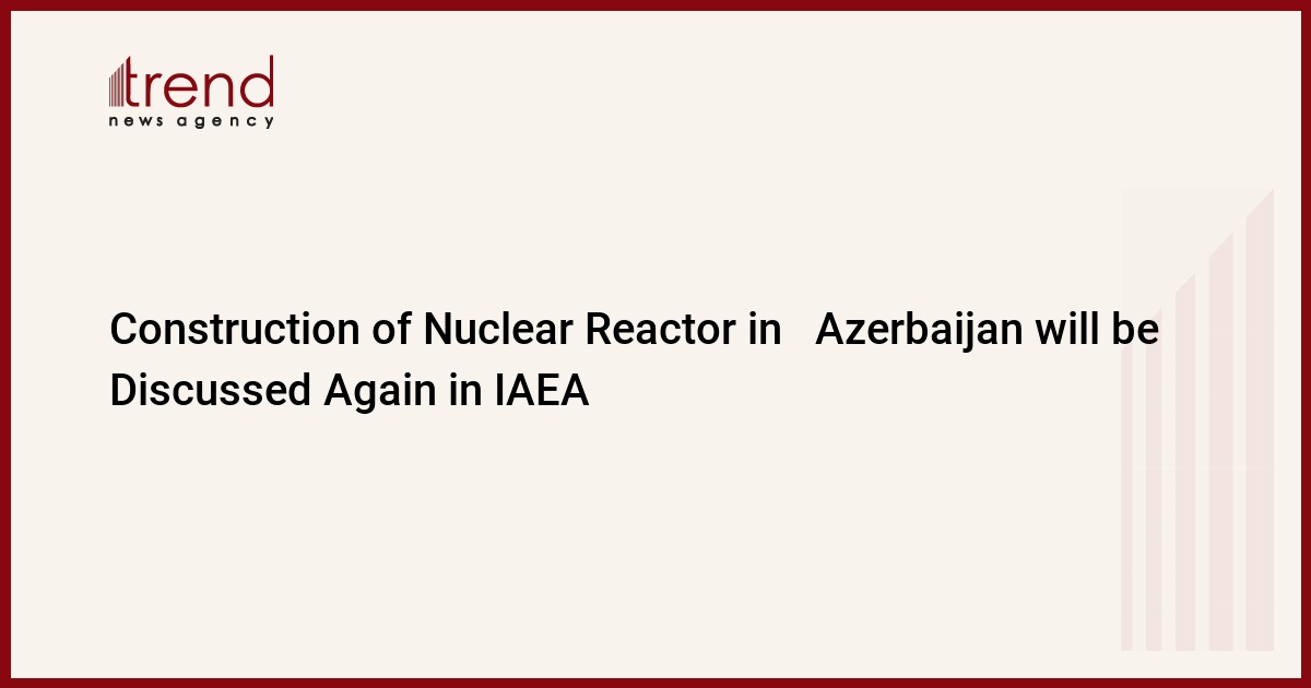 According to Garibov, five representatives from Azerbaijan will take part in IAEA discussions. The Azerbaijani delegation includes specialists from Radiation Problems Institute of Academy of Sciences of Azerbaijan and Ministry of Emergency Situations. The capacity of the reactor, its shape and the volume of allocated resources will also be discussed.