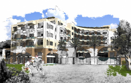 An artificial channel will separate the first zone of the island from other areas which is the start of the terrain and subject to strong winds. The most interesting place of the island is at that part and will have town with old style houses built behind the walls of a fortress. It will protect this part of the island from the winds. It will remind visitors of the ancient fortress of the Old City in Baku. A hotel is also planned called Caravanserai.