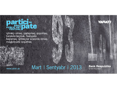 After the success of its inaugural year, YARAT Contemporary Art Organisation presents the second edition of "PARTICIPATE" Baku Public Art Festival 2013. Beginning on 15 March, the festival will showcase 10 public art commissions from a selection of Azerbaijani and international artists.