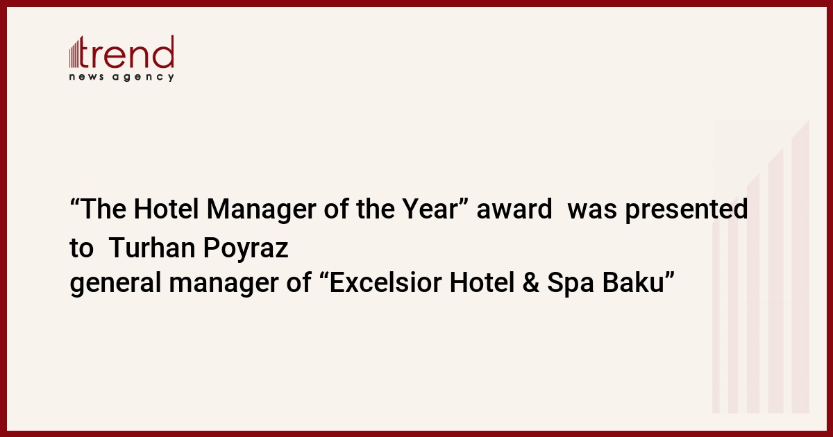 The general manager of "Excelsior Hotel & Spa Baku" Turhan Poyraz was awarded with nomination of "Hotel Manager of the Year" of "Azeri Business Award" National Award for his contribution to the development of tourism in Azerbaijan by "Business Time" magazine.