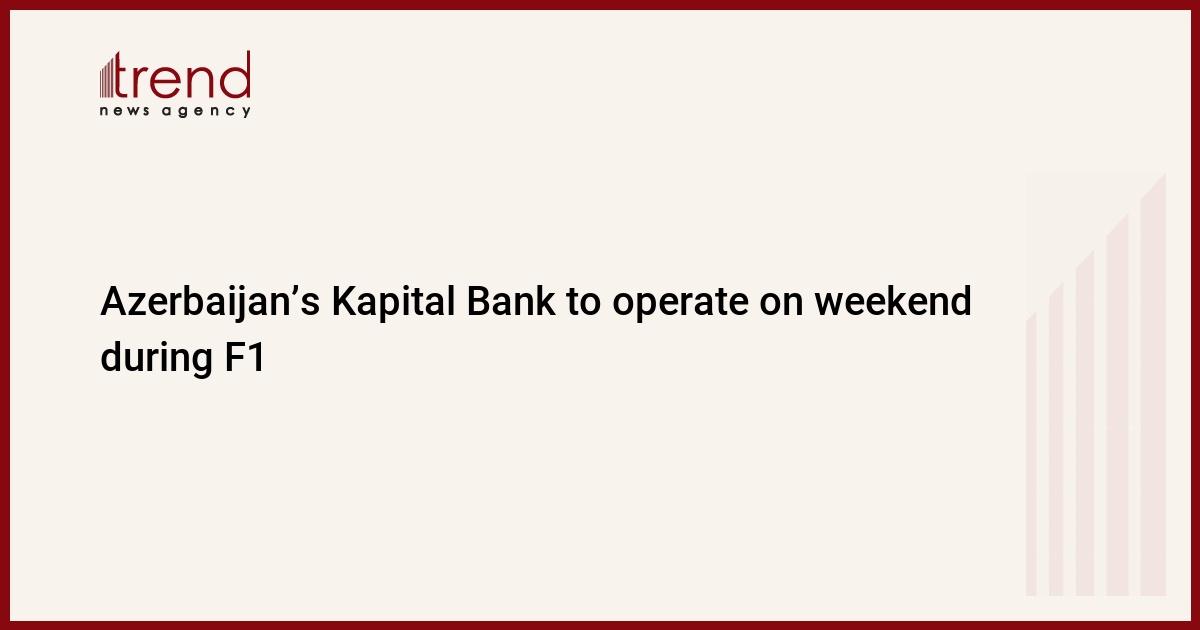 Branches of Kapital Bank in Baku - Kapital Bank Sabayil, Merkez, Ichari Shahar, Khatai and Kapital Bank Ganjlik Mall - will operate from 09:00 to 21:00 (GMT +4) in a period from June 10 to June 21, including weekends, in connection with the Formula 1 Grand Prix of Europe to be held in the Azerbaijani capital June 17-19, said the bank in a message.