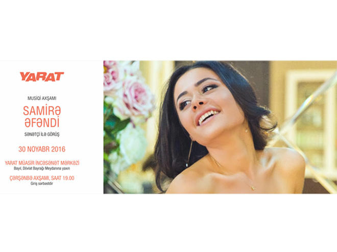 Along with two new exhibitions we are re-launching the series of live music events at YARAT Contemporary Art Centre. We would like to invite all of you to live music event with Samira Efendiyeva. On this particular day talented singer will share her impressions of exhibitions, too. Special guest of the evening will be Tunzala Agayeva.