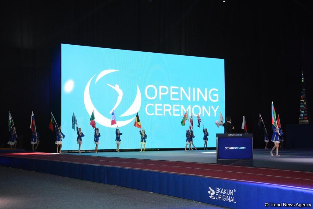 Final rehearsal of the opening ceremony of the World Cup in Trampoline Gymnastics and Tumbling was held in the National Gymnastics Arena in Baku Feb. 15.