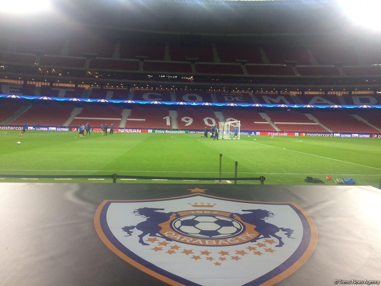 The Azerbaijani football club Qarabag conducted training on Monday at the stadium "Wanda Metropolitano" before the game against "Atletico Madrid".
