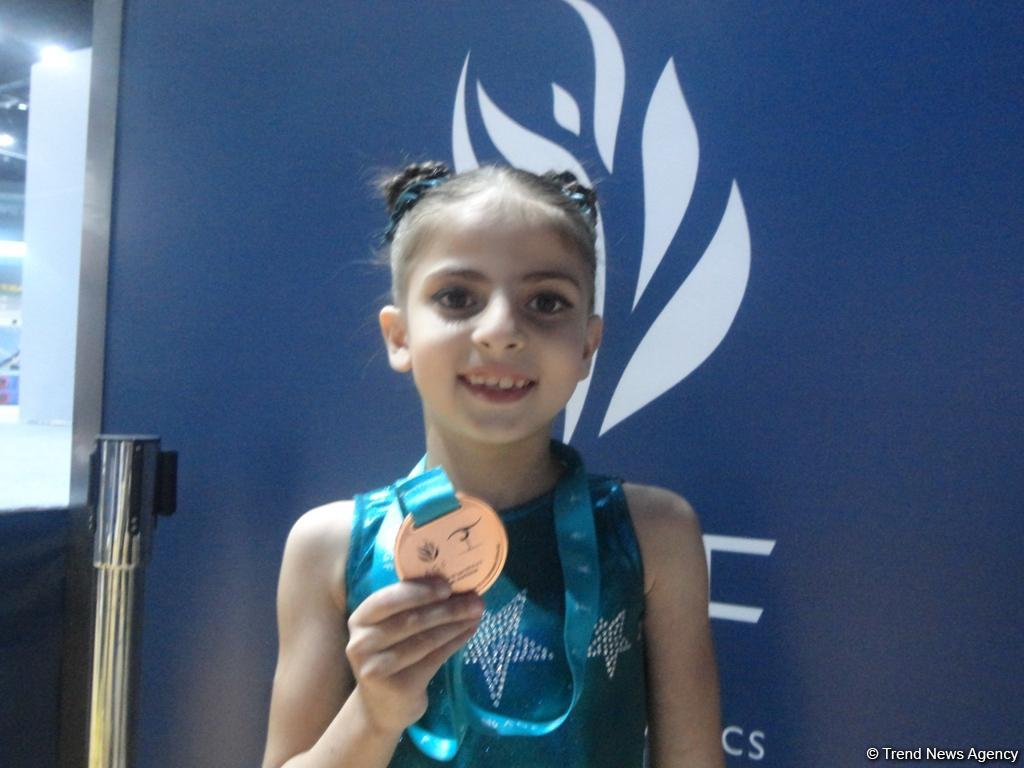 Young Azerbaijani gymnast Khadija Abbaszade, who won a bronze medal in the age category "children" of the competitions at the Azerbaijan and Baku championships in men's and women's artistic gymnastics, is satisfied with her performance.