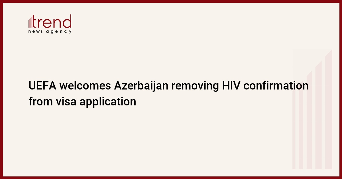 UEFA today welcomed the decision by the authorities of the Republic of Azerbaijan to amend the current e-visa system (www.evisa.gov.az), abolishing the requirement on HIV/hepatitis confirmation, Trend reports with the reference to UEFA's website.