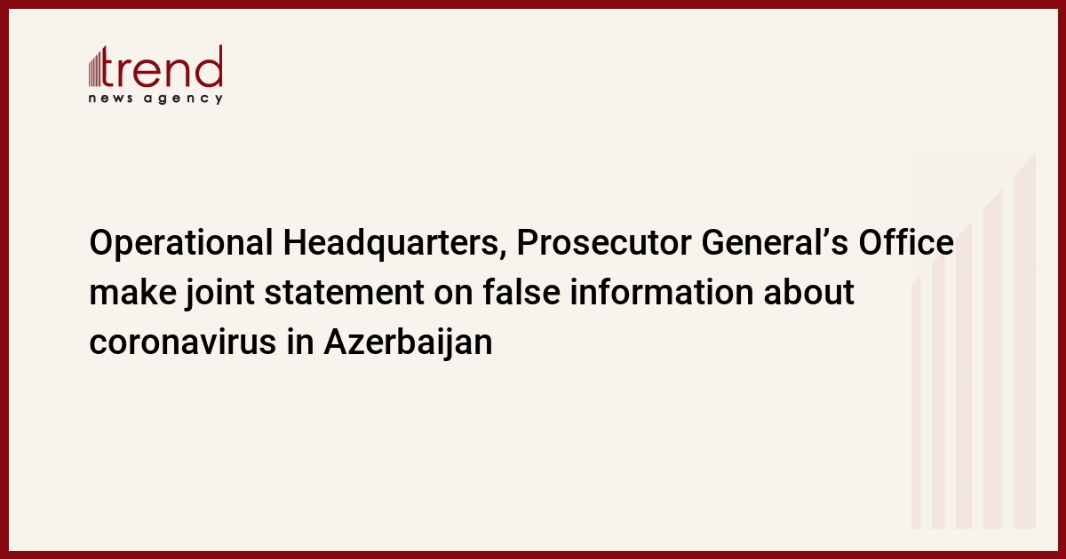 Operational Headquarters under Azerbaijan’s Cabinet of Ministers and Prosecutor General’s Office have made a joint statement on false information about coronavirus in the country, Trend reports.