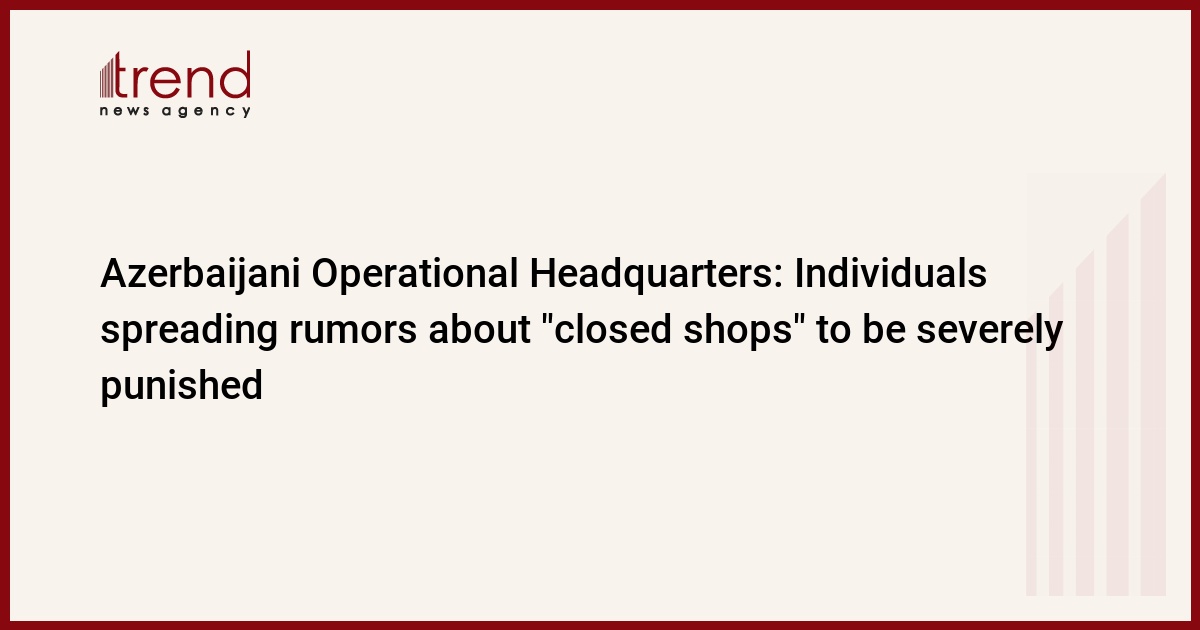 Those who are spreading rumors about "closed shops" will be severely punished in Azerbaijan, Trend reports referring to the statement made by the Operational Headquarters under the Azerbaijani Cabinet of Ministers.
