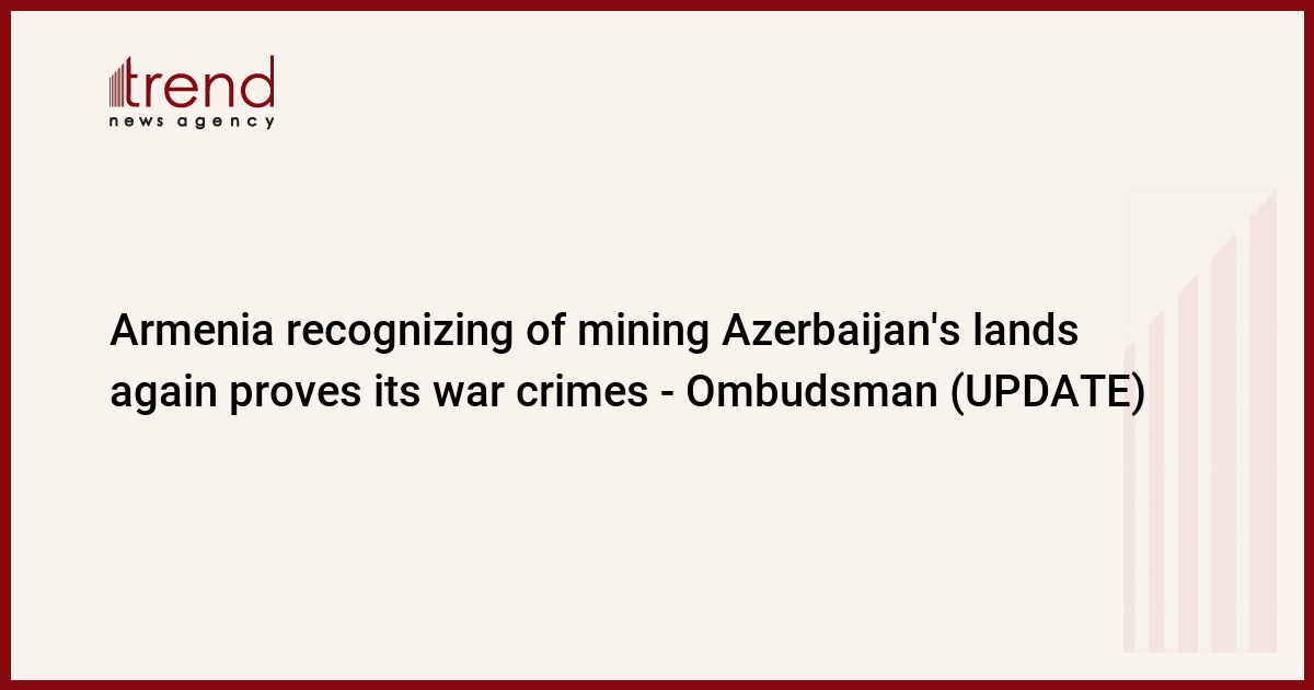 Armenia recognizing of mining Azerbaijan's territories once again proves its war crimes, Azerbaijan's Ombudsperson Sabina Aliyeva said, Trend reports on June 8.