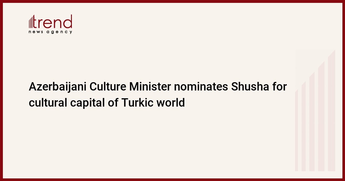 The Azerbaijani city of Shusha has been nominated for the title of the cultural capital of the Turkic world in 2023, Trend reports, referring to the Twitter publication of Azerbaijani Culture Minister Anar Karimov.