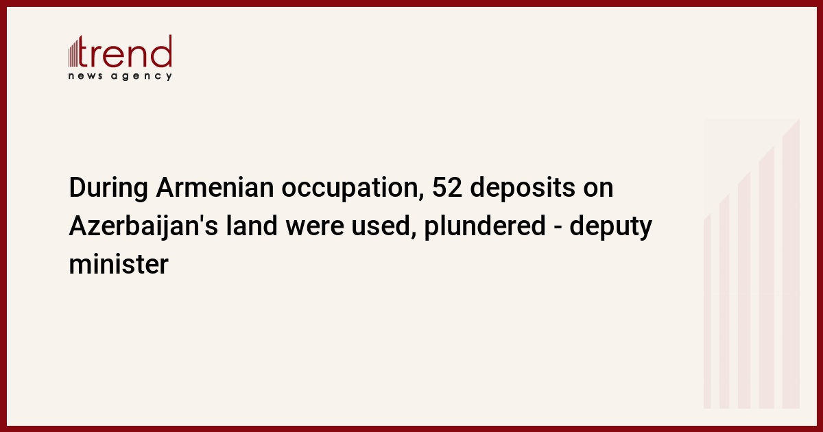 During the Armenian occupation of the Azerbaijani lands, the mineral resources of Azerbaijan were plundered, Trend reports, referring to the statement of Deputy Minister of Ecology and Natural Resources Vugar Kerimov stated at the event on the topic "The state of the environment and natural resources in the Eastern Zangezur and Karabakh economic regions".