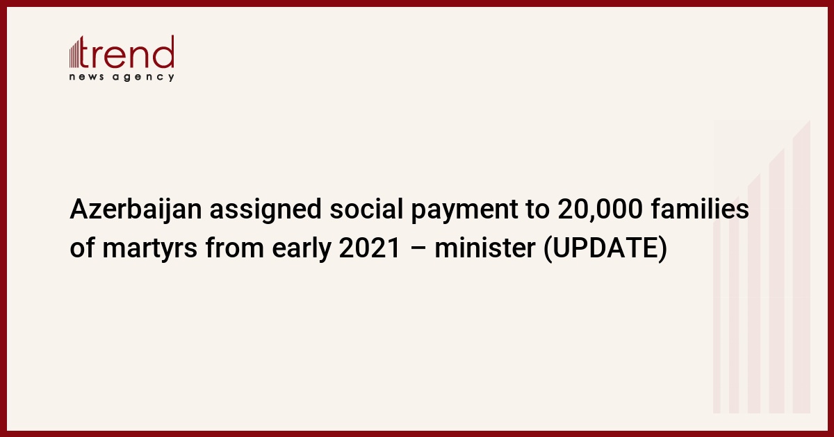 The social payment has been assigned to 20,000 families of martyrs in Azerbaijan since early 2021, Azerbaijani Minister of Labor and Social Protection of the Population Sahil Babayev said at a press conference dedicated to the year-end activity of the YASAT Foundation, Trend reports.