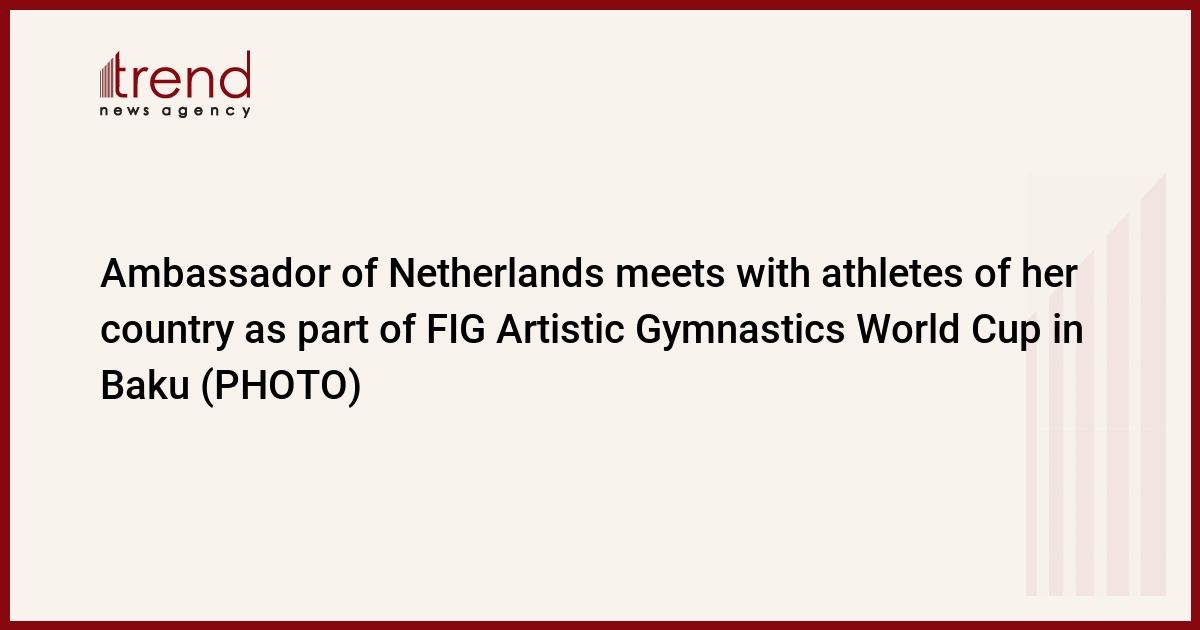 BAKU, Azerbaijan, April 2. Ambassador of the Netherlands to Azerbaijan Pauline Eizema met with the athletes of her country as part of the FIG World Cup in men's and women's artistic gymnastics taking place in the National Gymnastics Arena in Baku, Trend reports on April, 2.