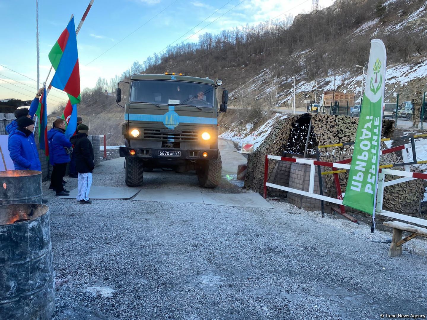 SHUSHA, Azerbaijan, February 18. Two trucks of Russian peacekeepers have driven along the Lachin-Khankendi road without any incidents, Trend reports from the scene.
