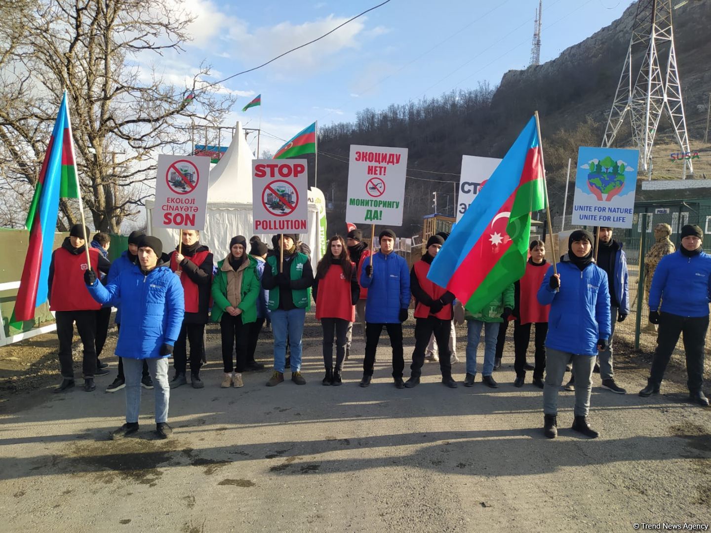 SHUSHA, Azerbaijan, March 7. The peaceful protest of Azerbaijani eco-activists on the Lachin-Khankendi road, passing near Shusha, continues, Trend reports from the scene.
