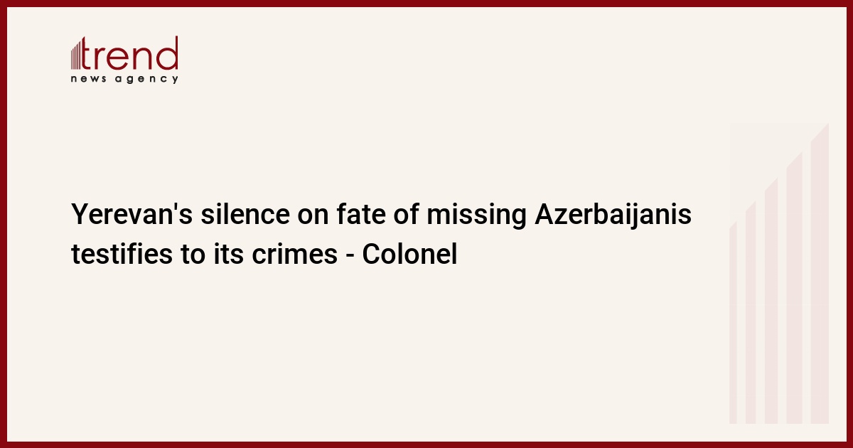 BAKU, Azerbaijan, August 4. Yerevan's silence on the fate of missing Azerbaijanis testifies to its crimes, Deputy Chairman of the Organization of Veterans of War, Labor and the Armed Forces, Colonel Jalil Khalilov told Trend.