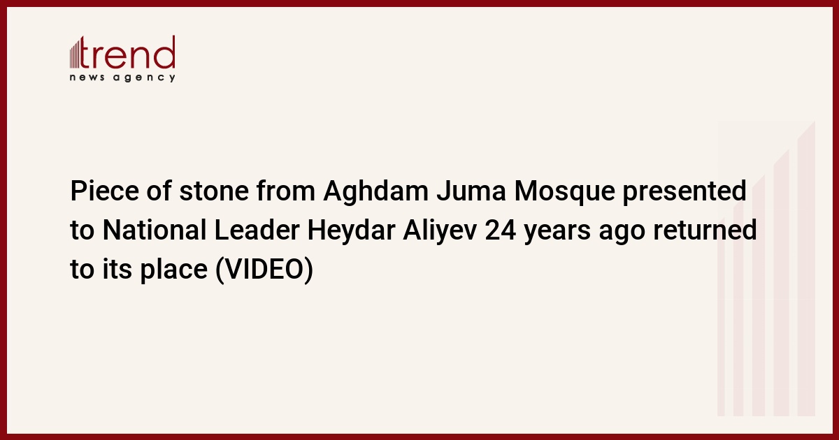 BAKU, Azerbaijan, April 25. A piece of stone from the Aghdam Juma Mosque, handed over 24 years ago by US State Department Special Representative, former OSCE Minsk Group Co-Chairman Carey Cavanaugh, to National Leader Heydar Aliyev, has been returned to the Aghdam Juma Mosque, Trend reports.