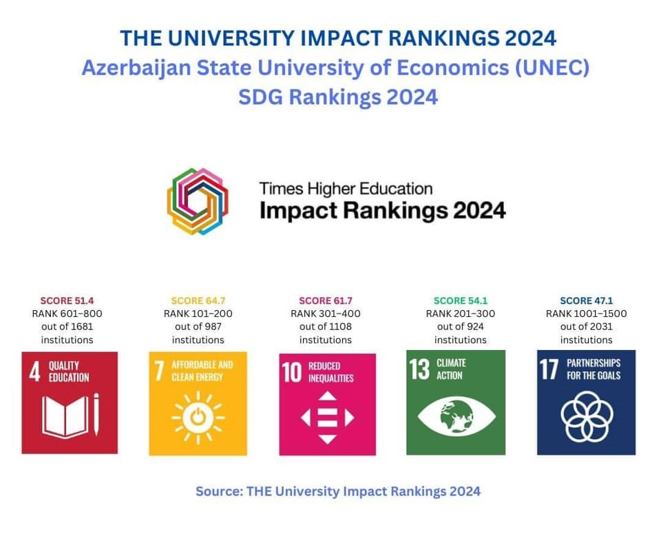 As well as, among 924 universities, it showed a high result, taking place in the range of 201-300 in terms of climate activity. Among 1,681 universities, UNEC ranks 601-800 in the world for quality education, and 301-400 in the world for reducing inequality among 1,108 universities.
