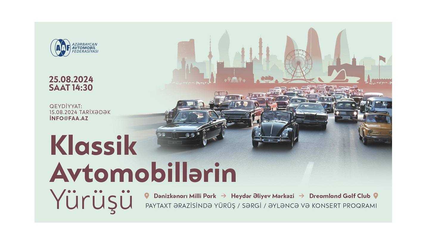 Cars manufactured before 1984 will take part in the traditional parade. To participate in the parade, owners of classic cars can register by [email protected] or calling (+99450) 295 01 00 until August 15.