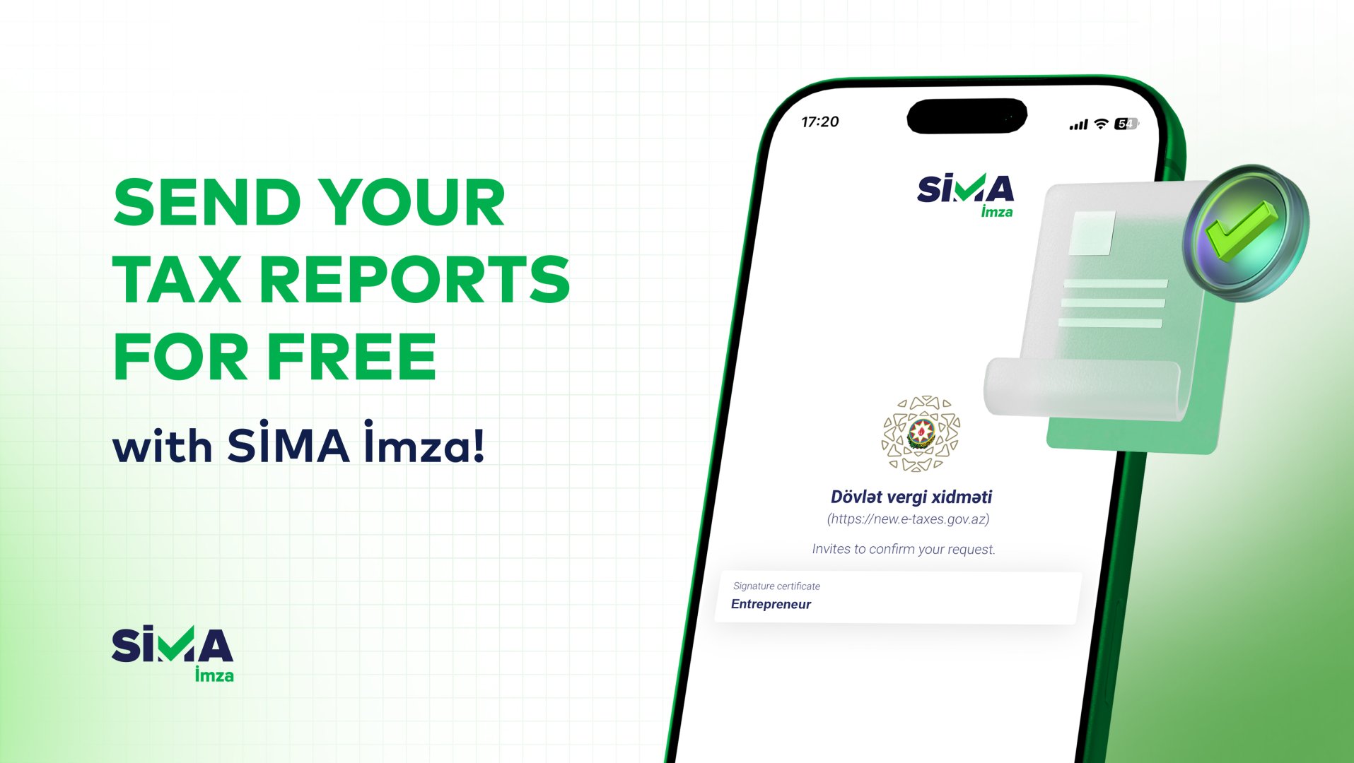 SİMA, a next-generation digital signature, was launched in 2022 by “AzInTelecom” LLC, a company within AZCON Holding. “SİMA İmza” is a digital signature solution that enables users to access a wide range of public and private services in a secure and efficient way. When obtaining a business signature, there are no hidden or additional charges beyond the subscription fee.