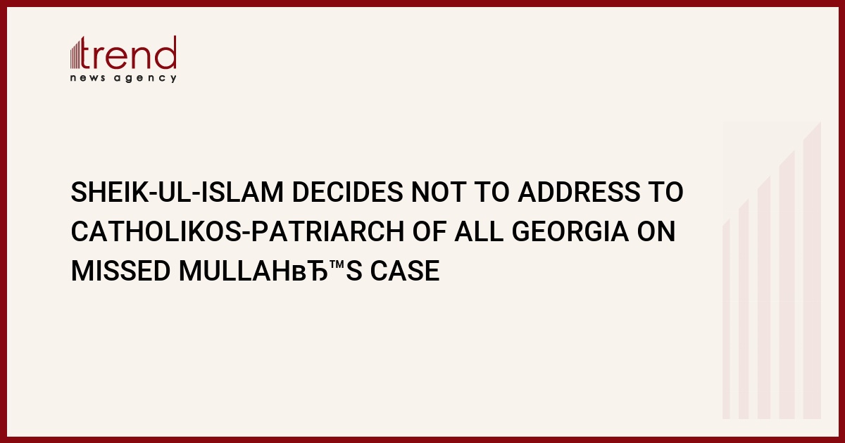 Allahshukur Pashazada, the chairman of the Department of Caucasian Moslems (DCM), decided not to address to Eliah II, the Catholikos-Patriarch of All Georgia, on case of missed mullah, the resident of Sadakhli village, Marneuli region of Georgia, Akif Agayev, the head of the press-service of the DCM, told Trend.