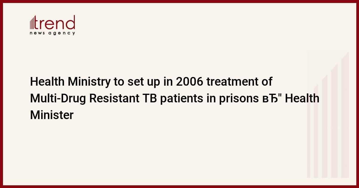 The Health Ministry will set up in 2006 treatment of Multi-Drug Resistant TB (MDR TB) patients in prisons, the Azerbaijani Health Minister Ogtay Shiraliayev told a ceremony dedicated to the 10th year of TB control in prisons in Azerbaijan, Trend reports.