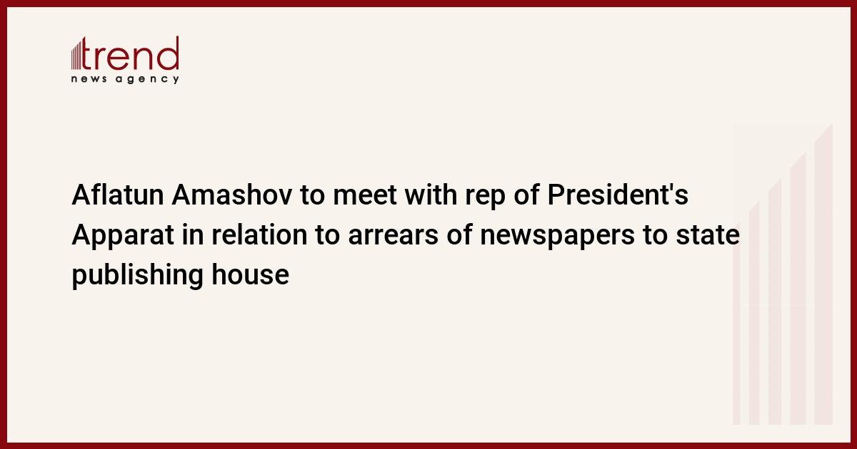 Aflatun Amashov, the chairman of the Media Council, will meet with Ali Hassanov, the Public-Political Department of the Presidents Apparat, to prevent the problems aroused in relation to the arrears of newspapers to the state publishing house, Trend reports.