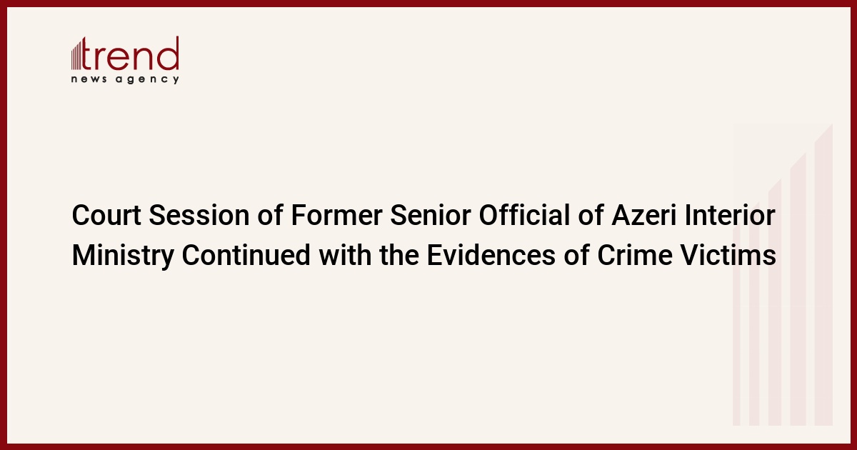 On November 1, the court session on the criminal cases of the former senior official of the Head Investigation Department of the Azerbaijani Interior Ministry Haji Mammadov and the criminal gang headed by him continued with the evidences of a victims kidnapped by the gang. The court session on the cases of Mammadov and his gang comprising of 25 persons, is held in the Court of Heinous Crimes of Azerbaijan under the Chair of Judge Ali Seyfaliyev, Trend reports.