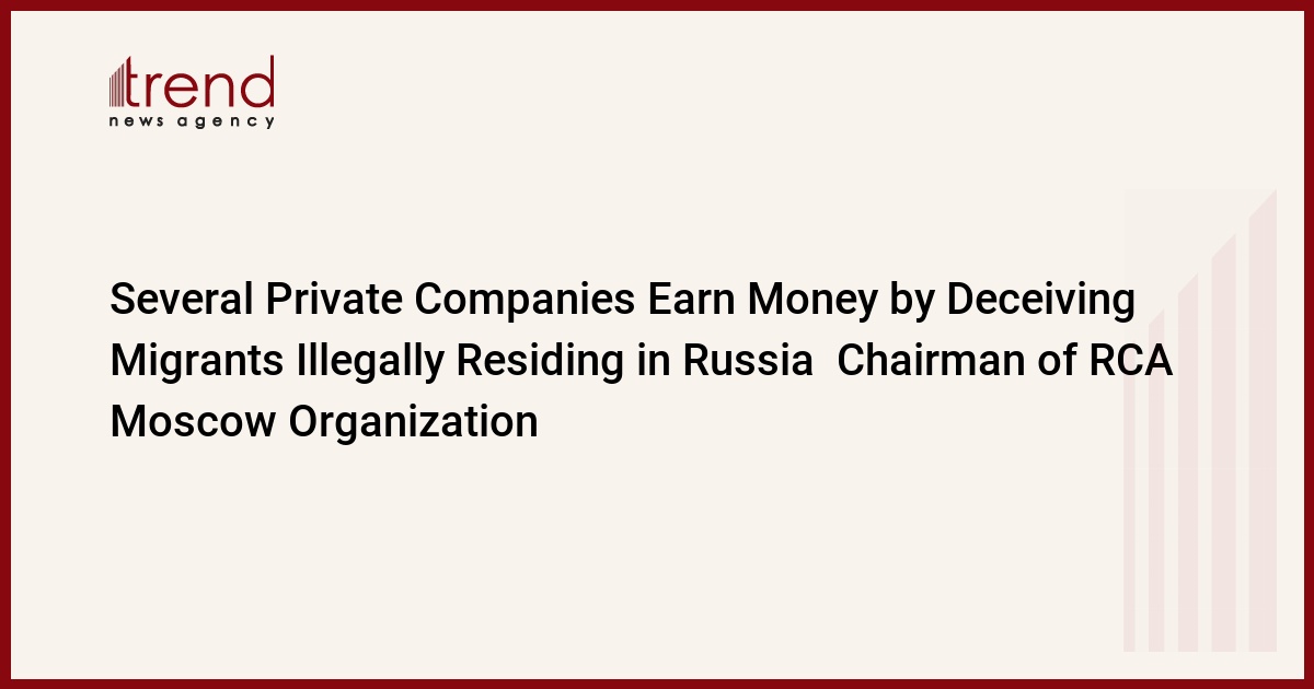 The Chairman of the Moscow organization of Russian Congress of the Azerbaijanis (RCA), Ilgar Hajiyev, informed Trend that after the new law in Russia regarding the migration, a number of the private companies try to earn money by deceiving the migrants illegally residing in Russia. He said that after the decision of the Russian Government regarding the eviction of the people, who live and work without registration, from the country, the RCA assist the Azerbaijanis in resolving their problems. Presently we render mainly juridical assistance to the Azerbaijanis. Our advocates receive the Azerbaijan and explain to them the documents necessary for the registration. Several people have entered into registration after our juridical advices, he said.