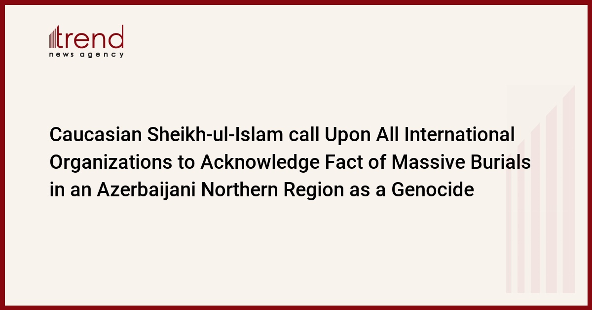 Azerbaijan, Baku/ Trend , corr. S. Aghayeva/ The spiritual leader of Caucasian Muslims, Sheikh-ul-Islam Allahshukur Pashazadeh, called upon the Council of Europe, the UN and other international organizations to acknowledge the mass graves in the northern district of Guba as genocide of the Azerbaijani people by Armenians.