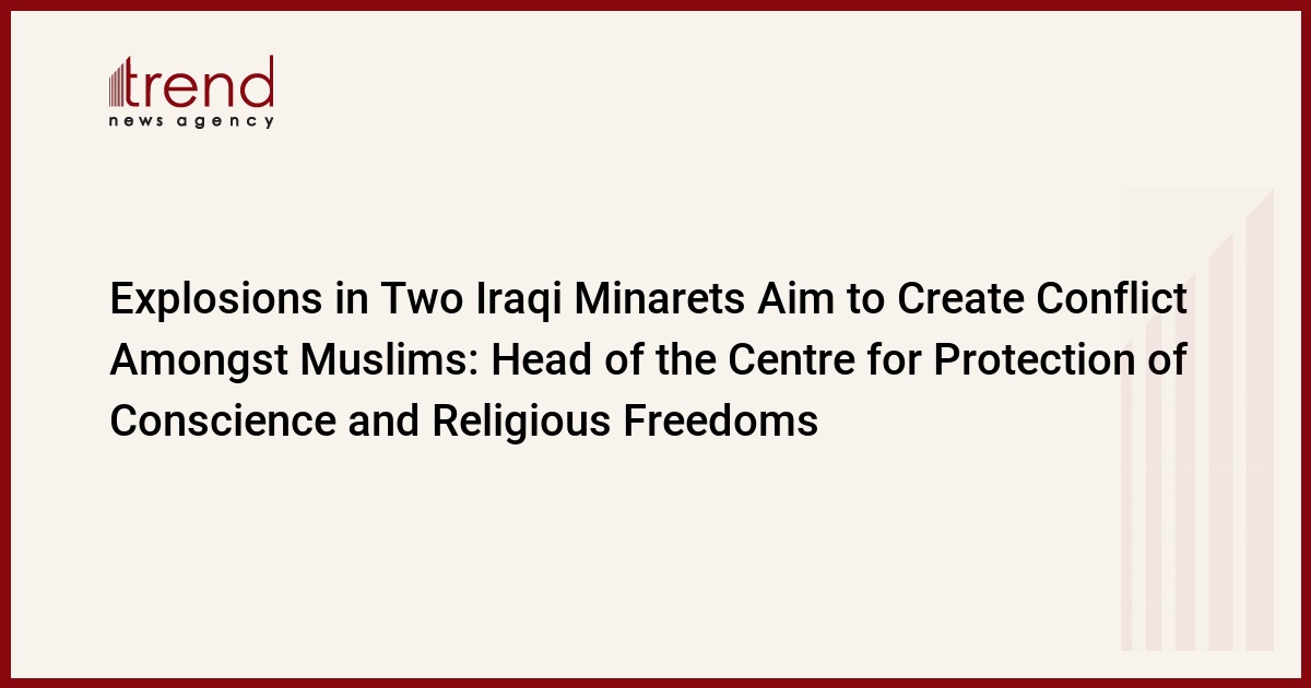 Azerbaijan, Baku / corr. Trend E.Huseynly / The explosions in two Iraqi minarets aim to create conflict amongst Muslims, said the Head of the Centre for Protection of Conscience and Religious Freedoms (DEVAMM), Ilgar Ibrahimoglu. He called on all supporters of Islam, especially Muslims of Iraq to become vigilant. According to Ibrahimoglu, the Muslims should demonstrate patience in such a complicated situation.