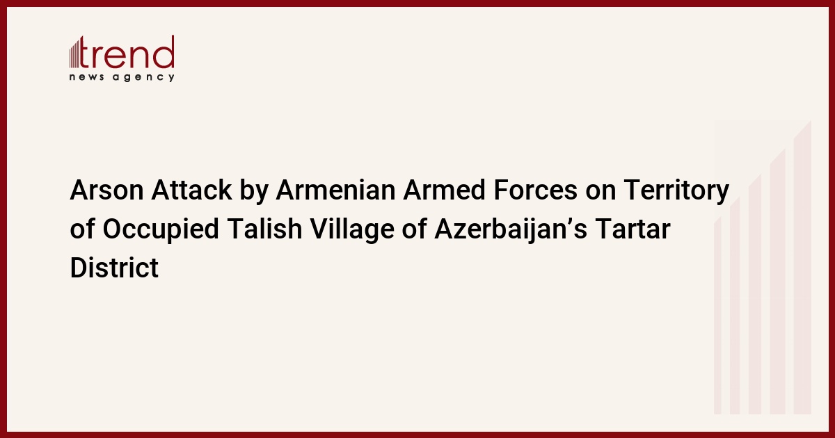 Azerbaijan, Baku /corr. Trend Sh.Jaliloglu / On 15 August at approximately 22:00 hours, a division of the Armenian Armed Forces committed an arson attack on the territory of occupied Talish village of Azerbaijan's Tartar district. According to the information by the Executive Power of Tartar district, the Armenian Armed Forces set light to nearly 100 ha of vegetation.