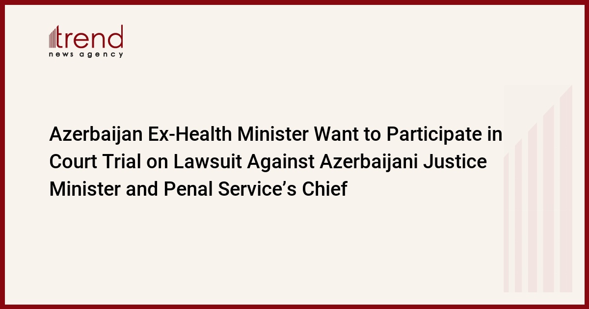 Azerbaijan, Baku / Trend corr. I.Alizadeh / The Azerbaijani ex-Health Minister, Ali Insanov, wants to participate in the court trial of the lawsuit against the Azerbaijani Justice Minister and the Penal Service's chief. Insanov's lawyer, Agaveys Shahverdi submitted a petition to attend court during the process held in Nasimi District Court.