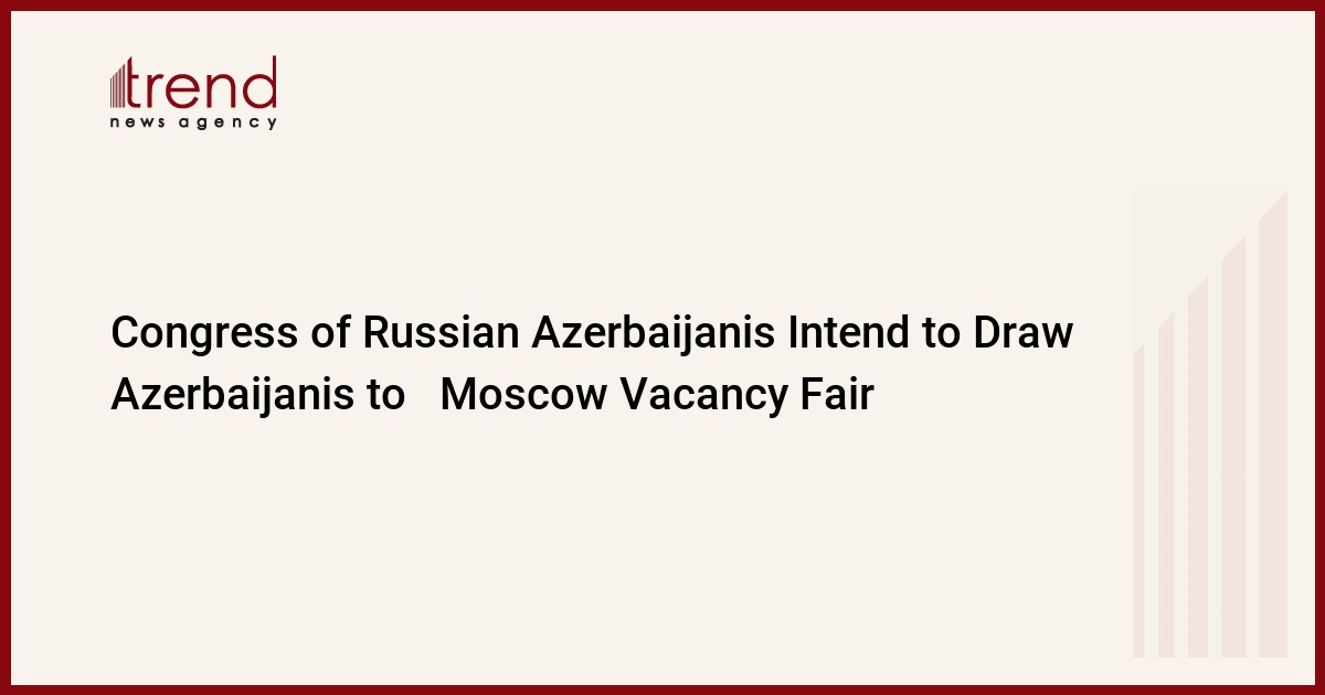 Russia, Moscow / Trend corr.R.Agayev / Congress of Russian Azerbaijanis intends to draw the Azerbaijani businessmen in Moscow to participate at the upcoming Vacancy Fair. The fair will be held in Moscow on 19 September, the Head of the Moscow City Department of the Congress of the Russian Azerbaijanis (CRA), Ilgar Hajiyev, said to the Trend Agency. The State Institution of the Interregional Business Information Centre (BIC) is the organizers of the Fair. We have already developed the draft of bilateral agreement, which to be signed by CRA and BIC, Hajiyev said. The Azerbaijani Labour Ministry and social population of Azerbaijan is expected to attend at the Fair. Hajiyev noted that the false information about cleaning of Moscow from the migrants was ungrounded and had a negative character. CRA has well enough experience and fruitful results of joint fairs held through support of the Federal National-Cultural Autonomous of Russian Azerbaijanis of 'Azerros'. CRA confirmed the information about the upcoming vacancy fair. The representative of BIC explained the innovations took pace in the migration legislation of the Russian Federation, particularly noted that the labour agreement with foreign civil should be concluded since coming of this person to Russia, to all firms and companies attended at the workshop of the BIC. Wages of foreign civil should amount to 6,100 roubles in compliance with the agreement signed by Moscow, Moscow's Trade Union and Moscow Industrials and Entrepreneurs Union. The agreement to take effect from 1 September 2007.