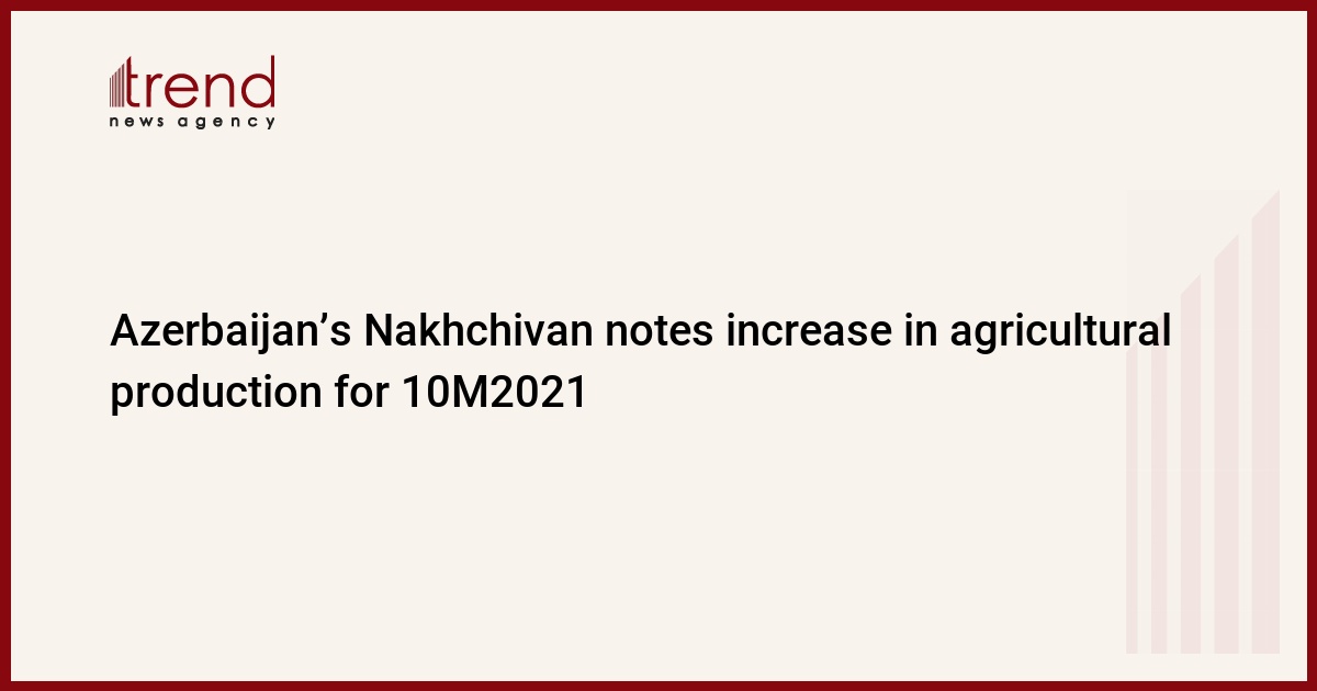 Agricultural products worth almost 452.916 million manats ($266.5 million) in 10M2021 were produced Nakhchivan Autonomous Republic (NAR), Trend reports with reference to the State Statistics Committee of the NAR.