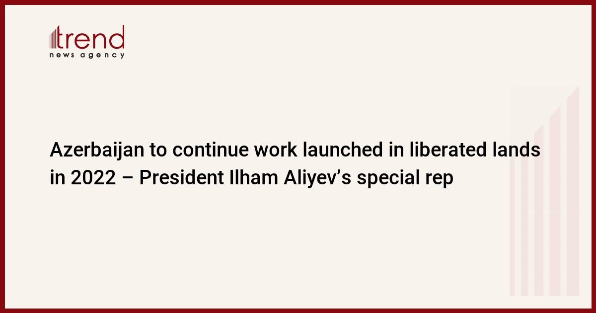 The work launched over the past year in the Azerbaijani lands liberated from the Armenian occupation will continue in 2022 according to schedule, Emin Huseynov, special representative of the President of Azerbaijan in the liberated territories (except for Shusha district), included in the Karabakh economic region, told reporters, Trend reports on Dec. 24.