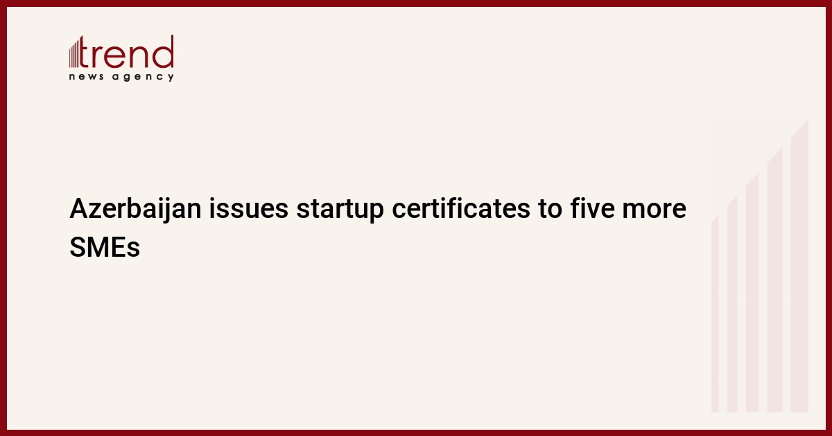 BAKU, Azerbaijan, April 10. Azerbaijani Small and Medium Business Development Agency (SMBDA) under the Ministry of Economy issued start-up certificates to five more SMEs (small and medium-sized enterprises), Trend reports.