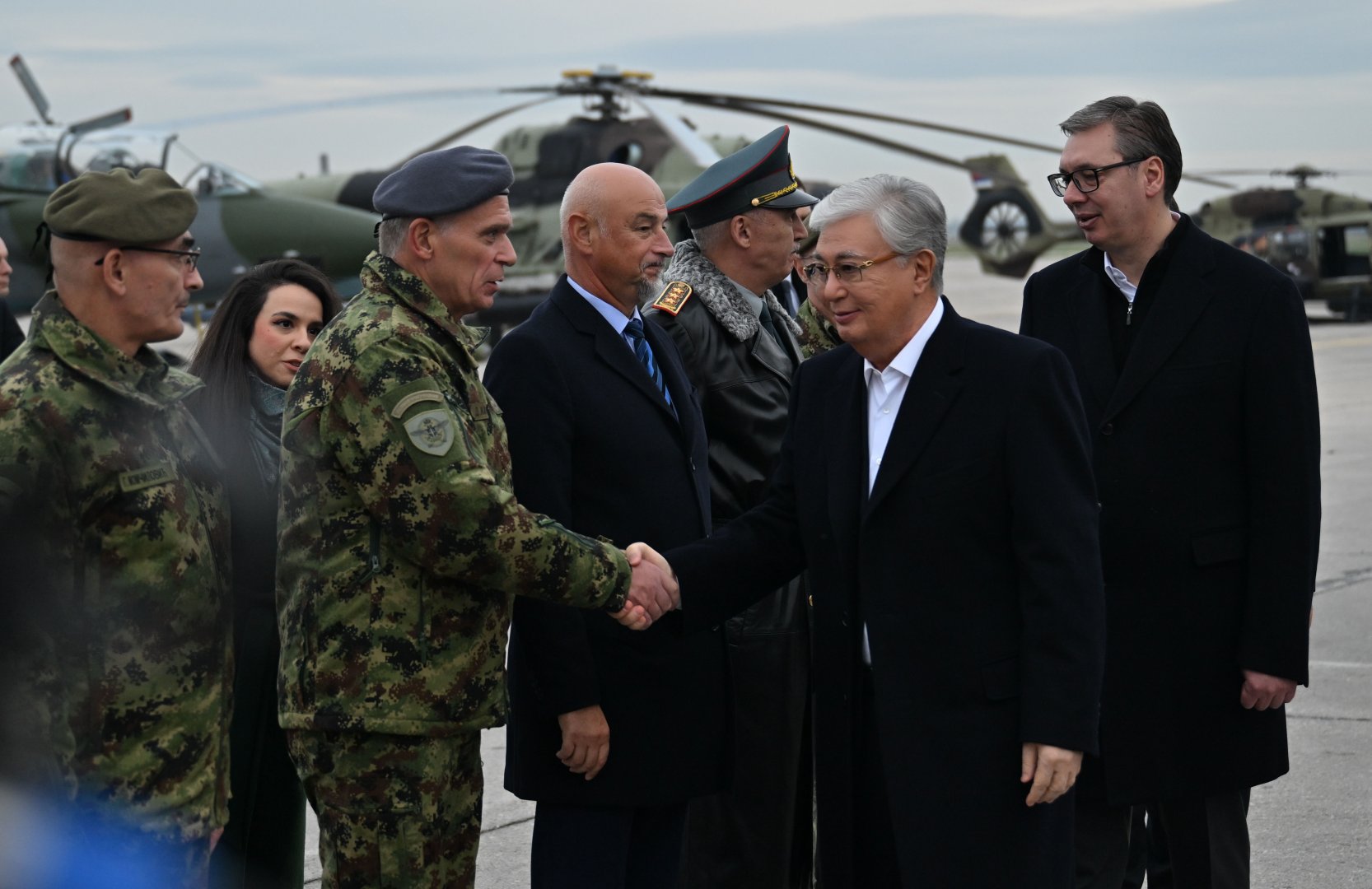 Kazakh President Kassym-Jomart Tokayev visited an exhibition of military-industrial complex enterprises held at the Batajnica airfield near Belgrade. Serbian President Aleksandar Vučić was also present during the tour of the Serbian defense industry's products.