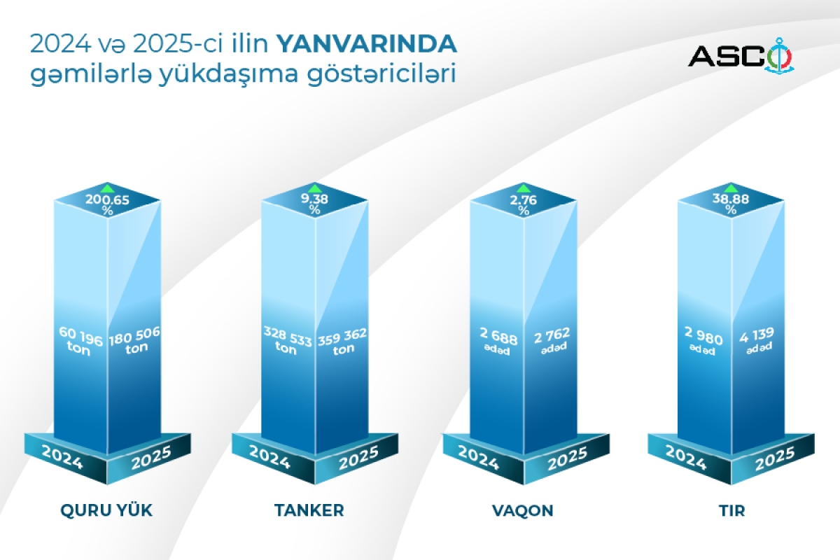 In January 2024, 2,980 trucks were transported, while in January 2025, this number reached 4,139, resulting in a 38.88 percent increase," the ASCO noted.
