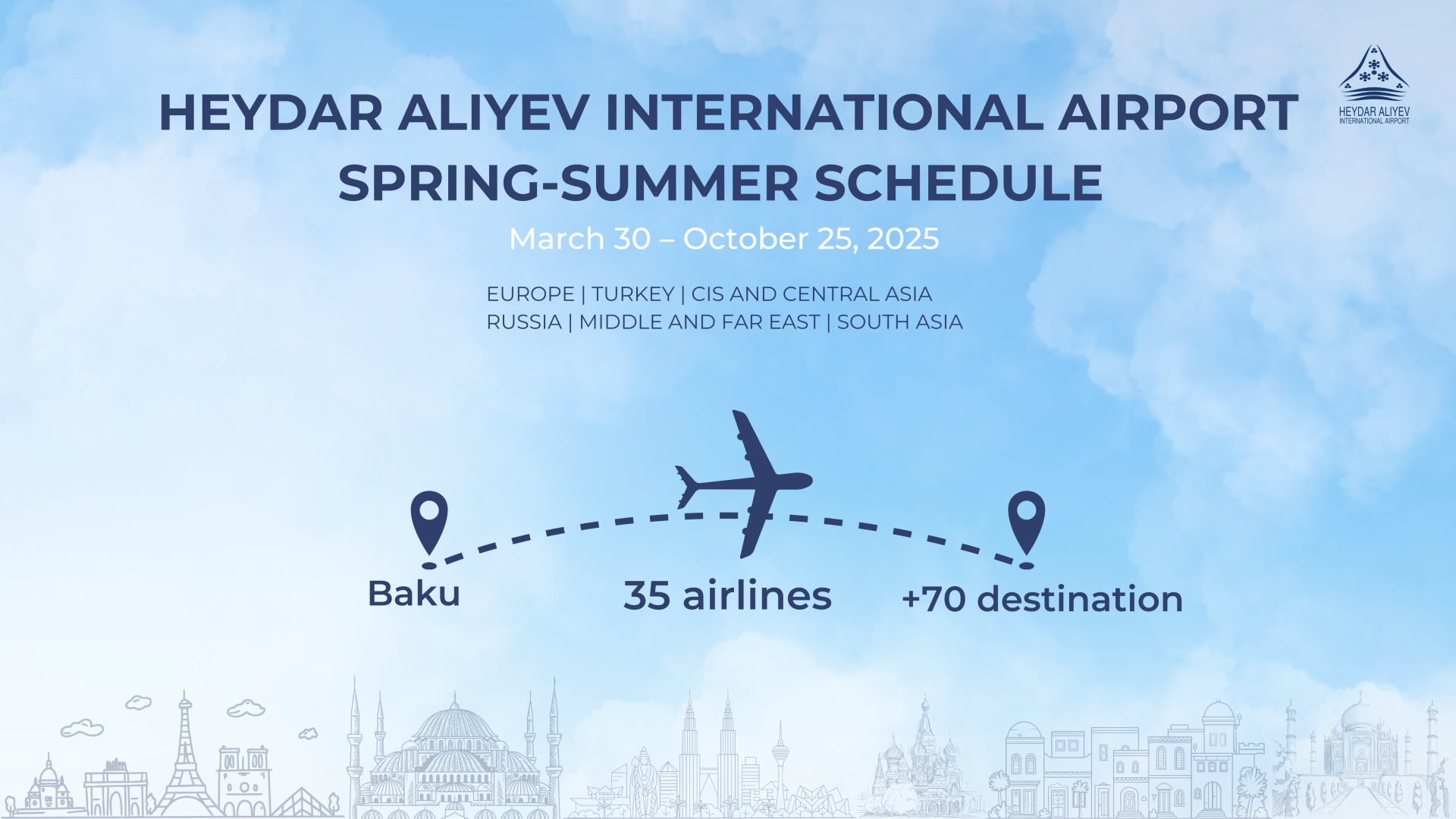 From March 30, 2025, Heydar Aliyev International Airport and Azerbaijan’s regional airports will transition to the spring-summer flight schedule, which will remain in effect until October 25. The new season will bring an increase in flight frequency, expansion of the route network, and more convenient connection options for passengers.