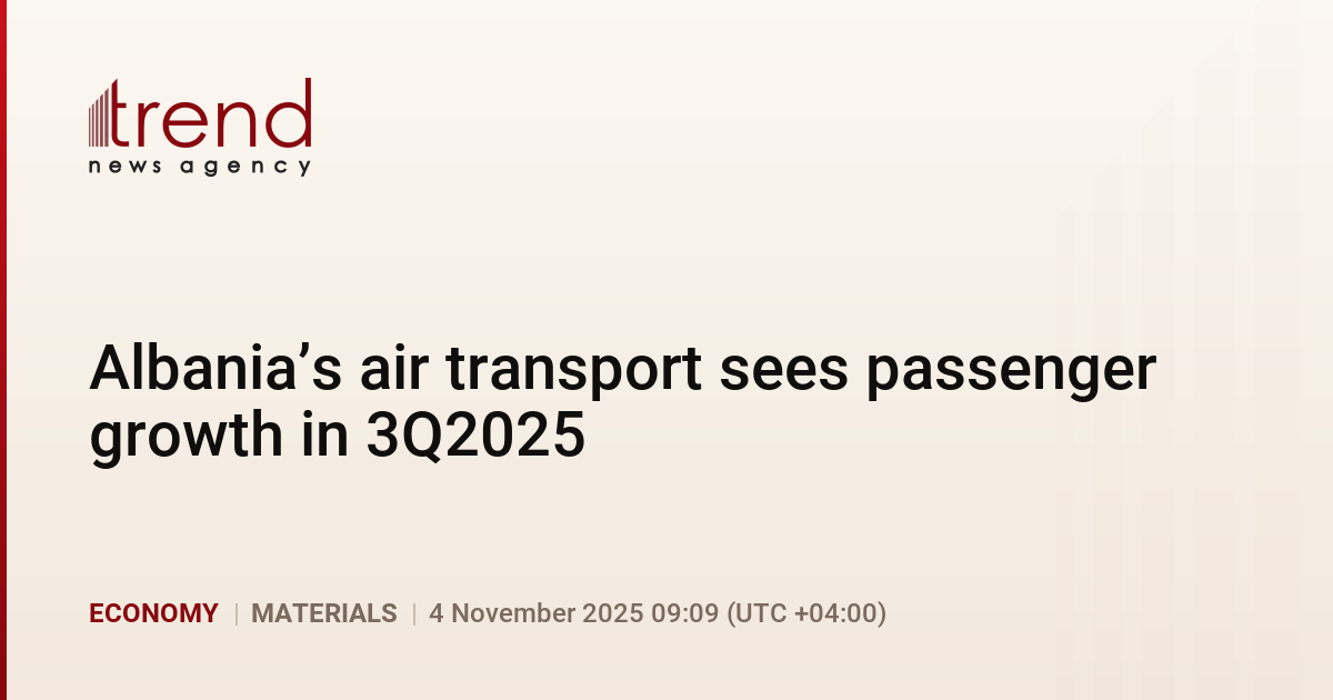 Air transport in Albania saw significant growth in the third quarter of 2025, with both passenger traffic and freight volumes rising compared to the same period last year. Over 3.8 million passengers traveled by air, while freight volumes increased by more than 25 percent.